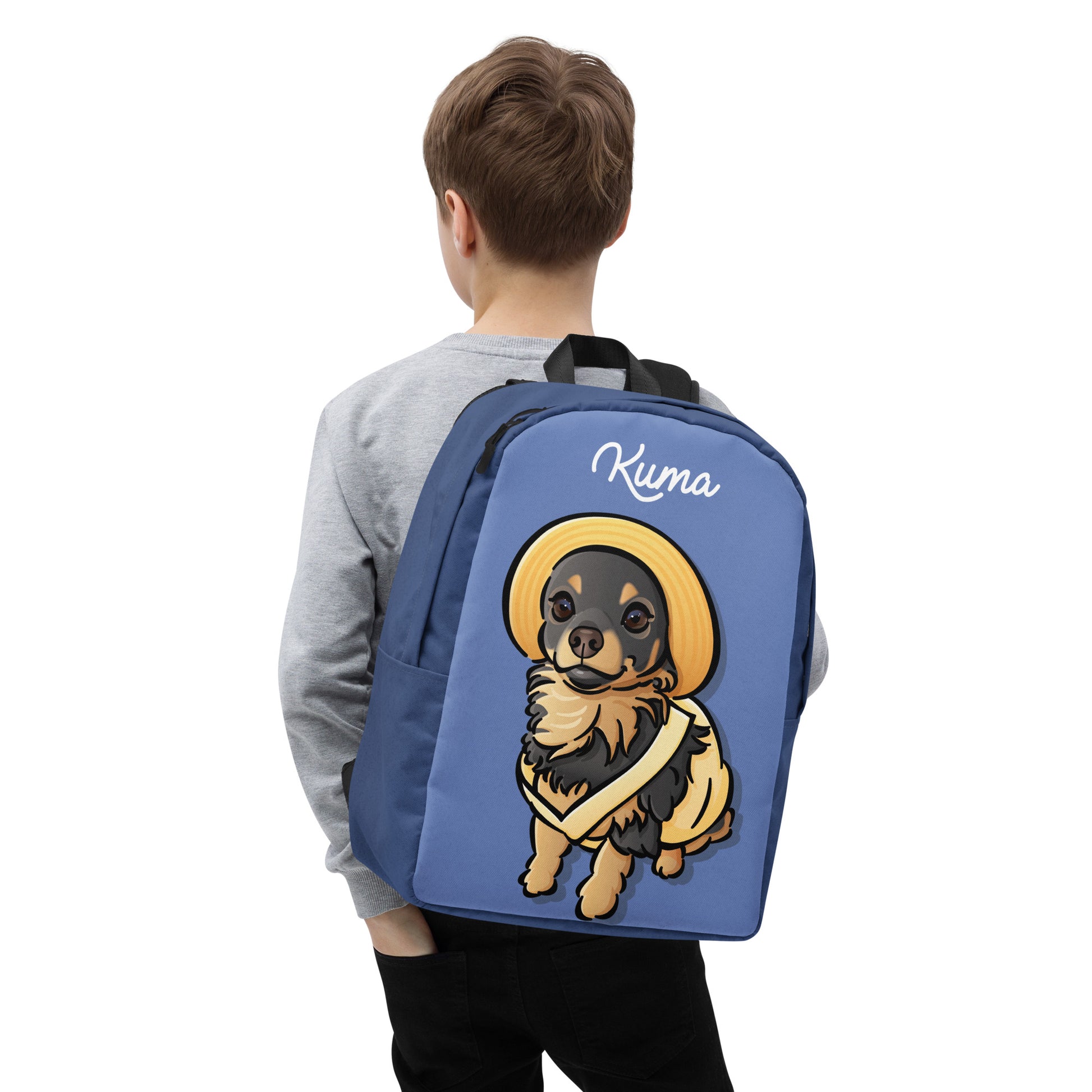 Design a custom All-Over Print Minimalist Backpack that's made from a water-resistant material. It has a large inside pocket for a laptop and a hidden pocket that's perfect for keeping valuable items safe and accessible while traveling.