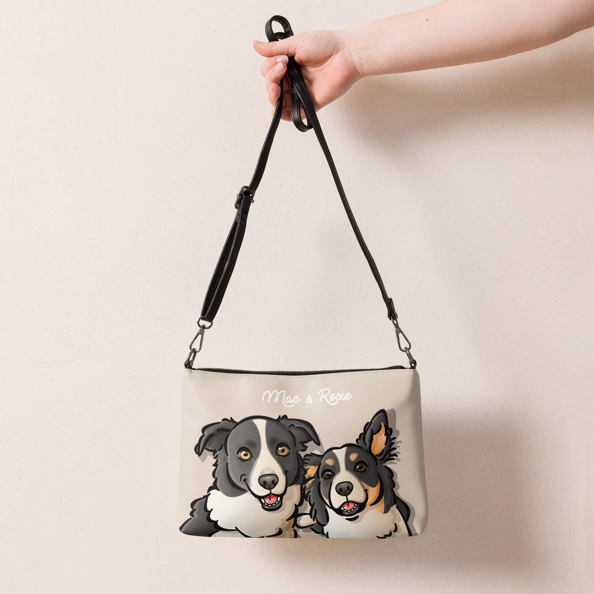 Made of premium faux leather, it features dark gray hardware and removable straps. This crossbody bag has a zip-top closure and plenty of inside pockets to keep your essentials safe and well-organized. Customize it for yourself, or add it to your store.